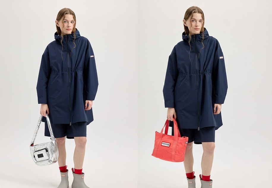 왼쪽은 '헌터'의 실제 화보 이미지이며, 오른쪽은 모델이 손에 든 가방을 실제 '헌터'의 다른 제품 사진만 업로드해 변경한 것입니다. 실제라면 모델이 2개의 가방을 들고 각각 촬영했어야 할 장면들입니다. |