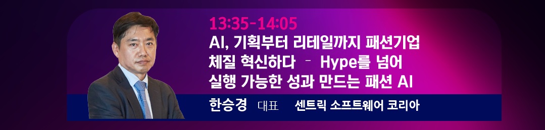 한승경 센트릭소프트웨어코리아 대표는 오는 9월 25일 오후 1시 35분 [설텍2025]에서 'AI, 기획부터 리테일까지 패션 기업 체질을 혁신하다'는 주제로 글로벌 스탠다드에 기준하기 위한 패션 프로세스의 AI 혁신에 대해 안내를 할 예정입니다.